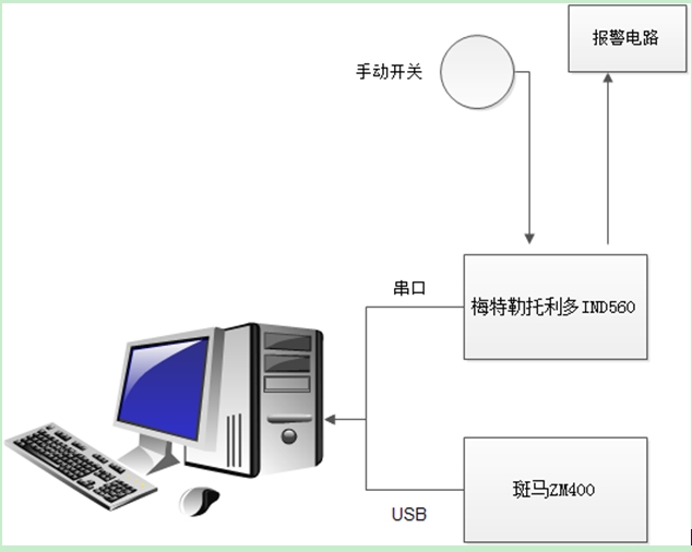 利用IND560附带的DI/DO板(数字输入输出接口板),可以实现手动开关信号采集与报警电路触发输出.