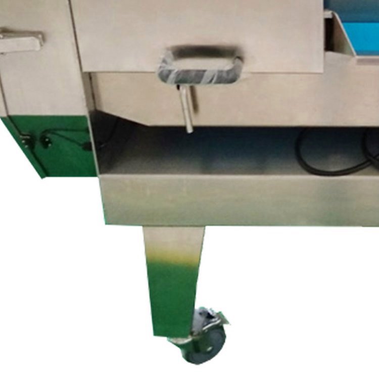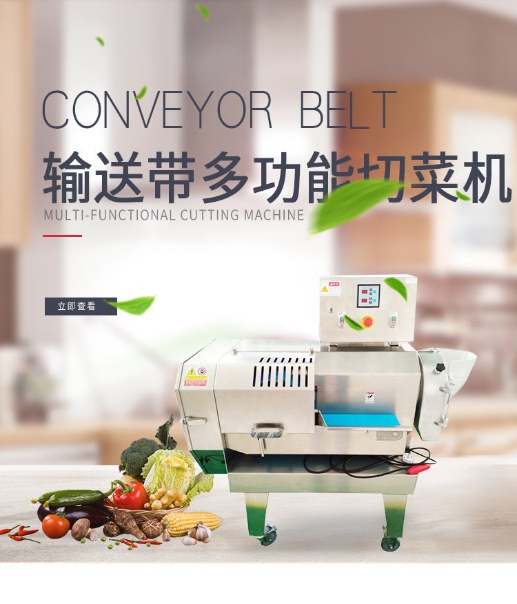 产品简介:新款输送带快拆式多功能切菜机,有四套刀组,球茎类切丁,切丝,切片各一组,切叶菜类大刀一对。