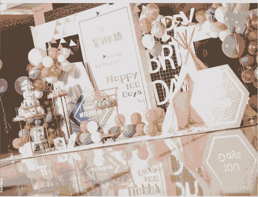 磁力原创设计,根据个人及场地结合时下流行元素,层次丰富色系融合,打造一份有纪念意义,高档时尚风的宝宝宴布置。