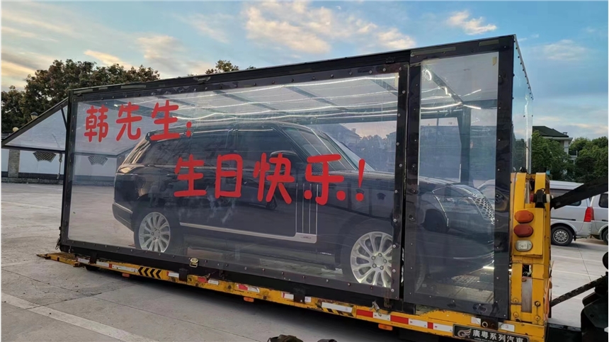 上海租车公司 出租网红厢式拖车 求婚表白租透明盒子拖车 新车交付租赁透明拖车