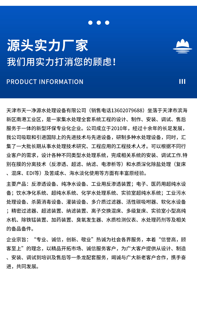 天津市天一净源水处理设备有限公司 智能客服智能客服在线解答,若涉及资金打款事宜,务必与厂家进行电话确认。