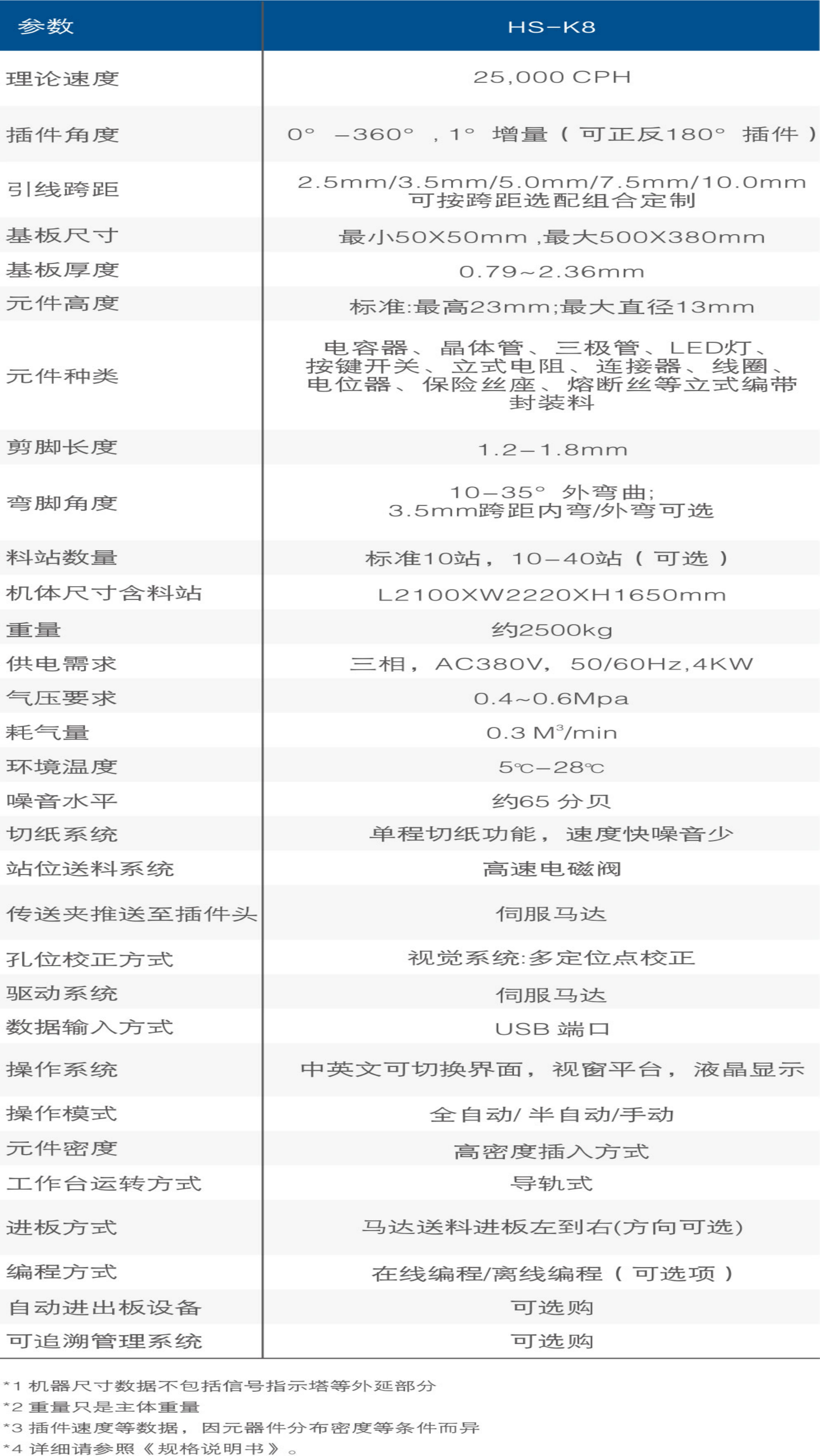 参数 | HS-K8 | ||