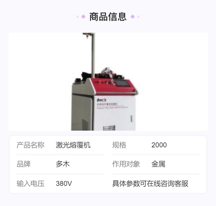 多木品牌激光熔覆机2000规格工业级金属表面处理设备高效熔覆机