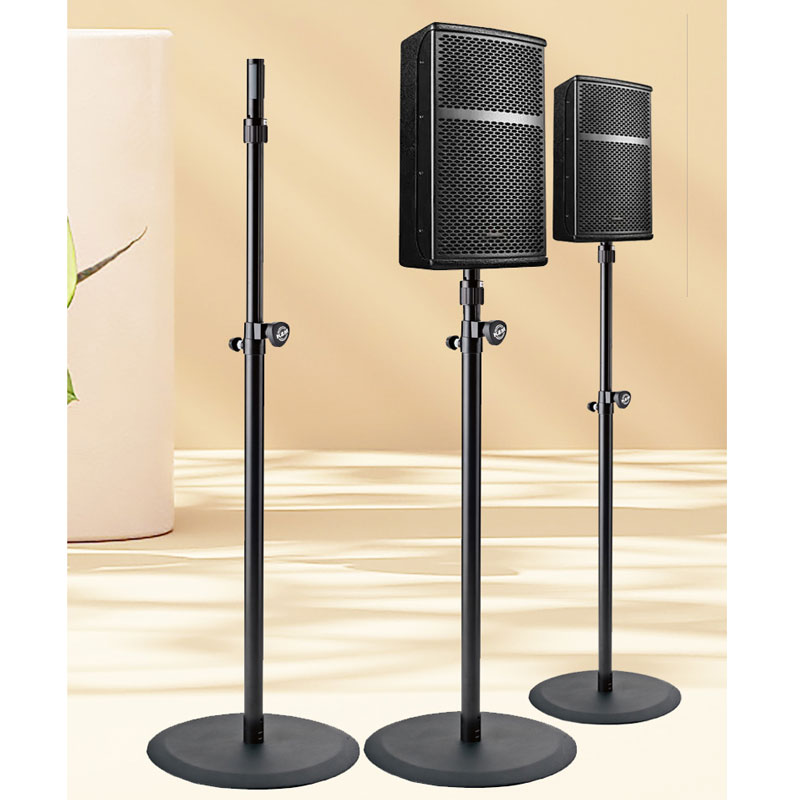 装饰性扬声器支架采用值得信赖的扩展心轴系统,可为扬声器提供稳定、紧密和牢固的配合。可移动的塑料夹板为杆和扬声器之间提供了无振动连接。连接扬声器很容易,使用方便的环形锁即可完成 - 只需将其放置在适当位置并拧紧即可。直径相对较小的重型铸铁板占用的空间很小。久经考验的弹簧螺栓带有锁定螺钉,可轻松安然地调节高度。支架的大的拉出高度为 1.800mm 毫米,适用于大的重量为 30kg 公斤的扬声器。