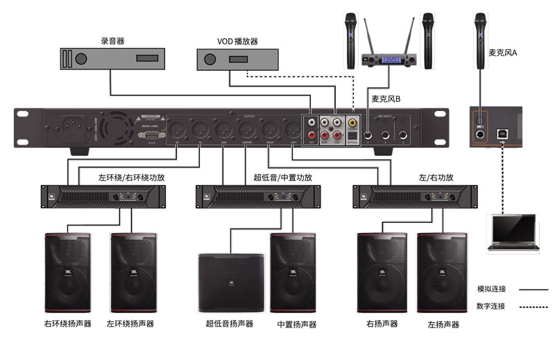 JBL产品已成为专注制作设施的选择、包括世界各地的录音棚、电彩院、音乐厅和体育场、剧院和电视广播中心。VX9为KTV带来娱乐体验效果。